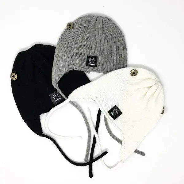 Baby Snap On Pom Poms Beanie with Strings Ivory